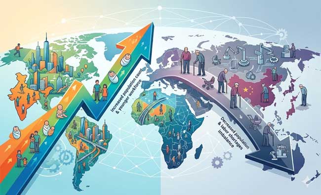 आने वाला समय दुनिया के लिए जनसांख्यिकीय असंतुलन का युग साबित हो सकता है। भारत और कुछ विकासशील देश जहां जनसंख्या लाभ की स्थिति में रहेंगे, वहीं चीन, जापान और कई विकसित राष्ट्र घटती आबादी की चुनौती से जूझते नजर आएंगे। यह बदलाव वैश्विक अर्थव्यवस्था, राजनीति और समाज की दिशा तय करने में महत्वपूर्ण भूमिका निभाएगा।