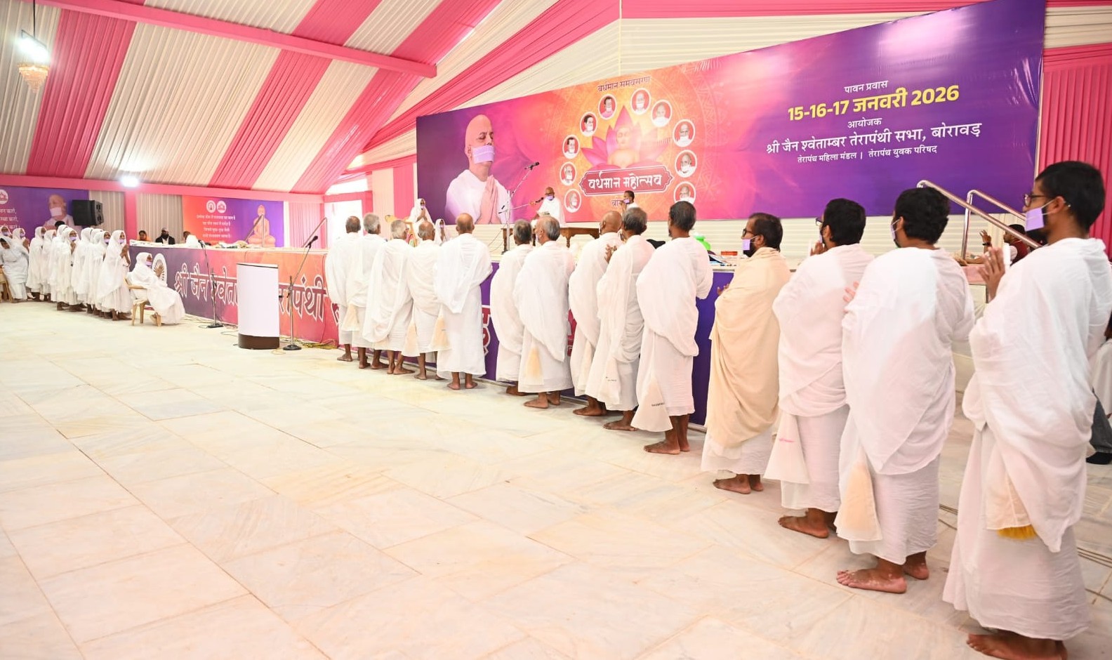 चतुर्विध धर्मसंघ ने आचार्यश्री के मुखारविंद के लुंचन की निर्जरा के संदर्भ में वंदन करते हुए निर्जरा में सहभागी बनाने की प्रार्थना की तो साधु, साध्वियों व समणियों के लिए आधा-आधा आगम स्वाध्याय व मुमुक्षु व श्रावक-श्राविकाओं के लिए तीन-तीन अतिरिक्त सामायिक करने प्रेरणा प्रदान की। चतुर्दशी के संदर्भ में आचार्यश्री के समक्ष साधु-साध्वियों व समणियों ने प्रवचन पण्डाल में पंक्तिबद्ध होकर लेखपत्र का उच्चारण किया। यह दृश्य बोरावड़वासियों को आह्लादित करने वाला था।