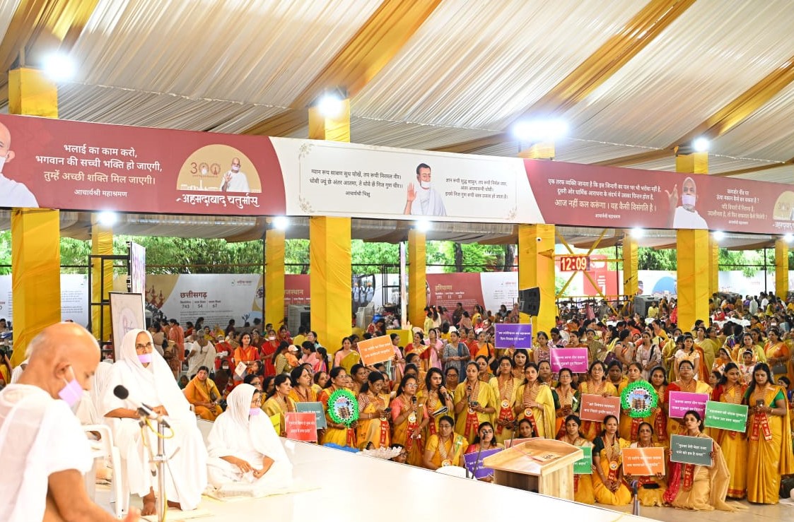 कोबा, गांधीनगर (गुजरात) : हरियाली तीज, तेरापंथ की बेटियों का अपने आध्यात्मिक पीहर में शुभागमन ने मानों इस वर्ष की हरियाली तीज के उत्सव को सत्गुणित कर दिया। रविवार को अहमदाबाद चतुर्मास प्रवास के दौरान जैन श्वेताम्बर तेरापंथी महासभा के ‘तत्त्वावधान में आयोजित ‘बेटी तेरापंथ की’ के तृतीय सम्मेलन के दूसरे व अंतिम दिन था। आज भी प्रातः सुबह से लेकर बेटियों के विदाई तक मानों अनेकों बार भावात्मक प्रवाहों में गोते लगाता रहा।