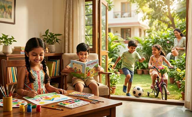 आज की व्यस्त जीवनशैली में बच्चों को परिवार के साथ समय कम मिल पाता है। छुट्टियों में उनके साथ बोर्ड गेम खेलें, कहानियां सुनाएं, पिकनिक पर जाएं या रिश्तेदारों से मिलवाएं। इससे पारिवारिक संबंध मजबूत होते हैं।