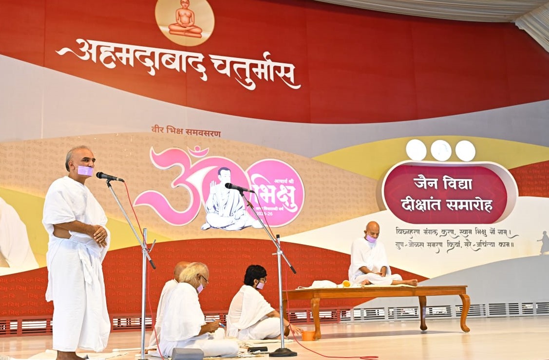गांधीनगर: जैन श्वेताम्बर तेरापंथ धर्मसंघ के ग्यारहवें अनुशास्ता, युगप्रधान, शांतिदूत आचार्यश्री महाश्रमणजी की मंगल सन्निधि में प्रतिदिन तेरापंथ समाज की अनेकानेक संस्थाओं के अधिवेशनों, समारोह व सम्मेलनों का क्रम निरंतर जारी है। मंगलवार को मुख्य मंगल प्रवचन कार्यक्रम में आचार्यश्री की मंगल सन्निधि में जैन विश्व भारती के तत्त्वावधान में समण संस्कृति संकाय द्वारा 25वें दीक्षांत समारोह का आयोजन किया।