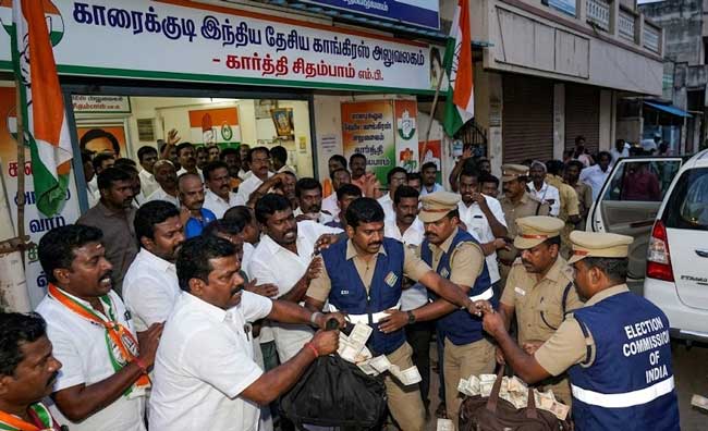 डेस्क : तमिलनाडु के शिवगंगा जिले में चुनावी निगरानी के दौरान बड़ा हंगामा सामने आया है। चुनाव आयोग के उड़न दस्ते द्वारा कांग्रेस सांसद Karti Chidambaram के कार्यालय परिसर से जब्त की गई नकदी को भीड़ ने कथित रूप से छीन लिया। घटना के बाद प्रशासन और पुलिस विभाग में हलचल मच गई।