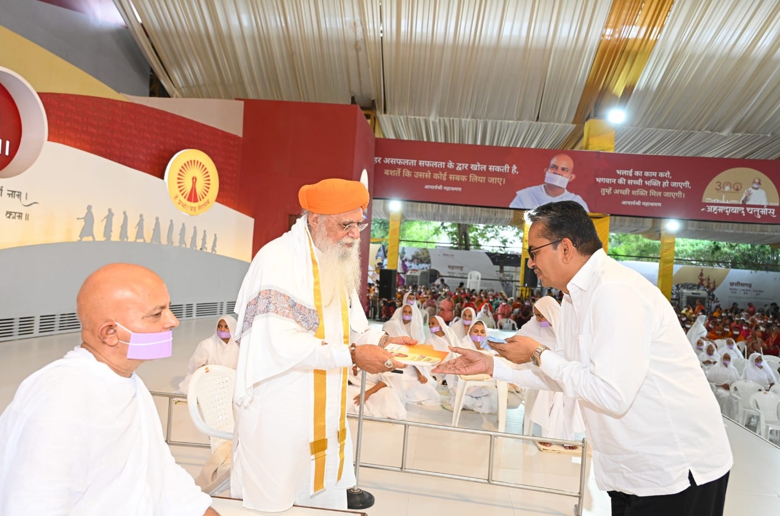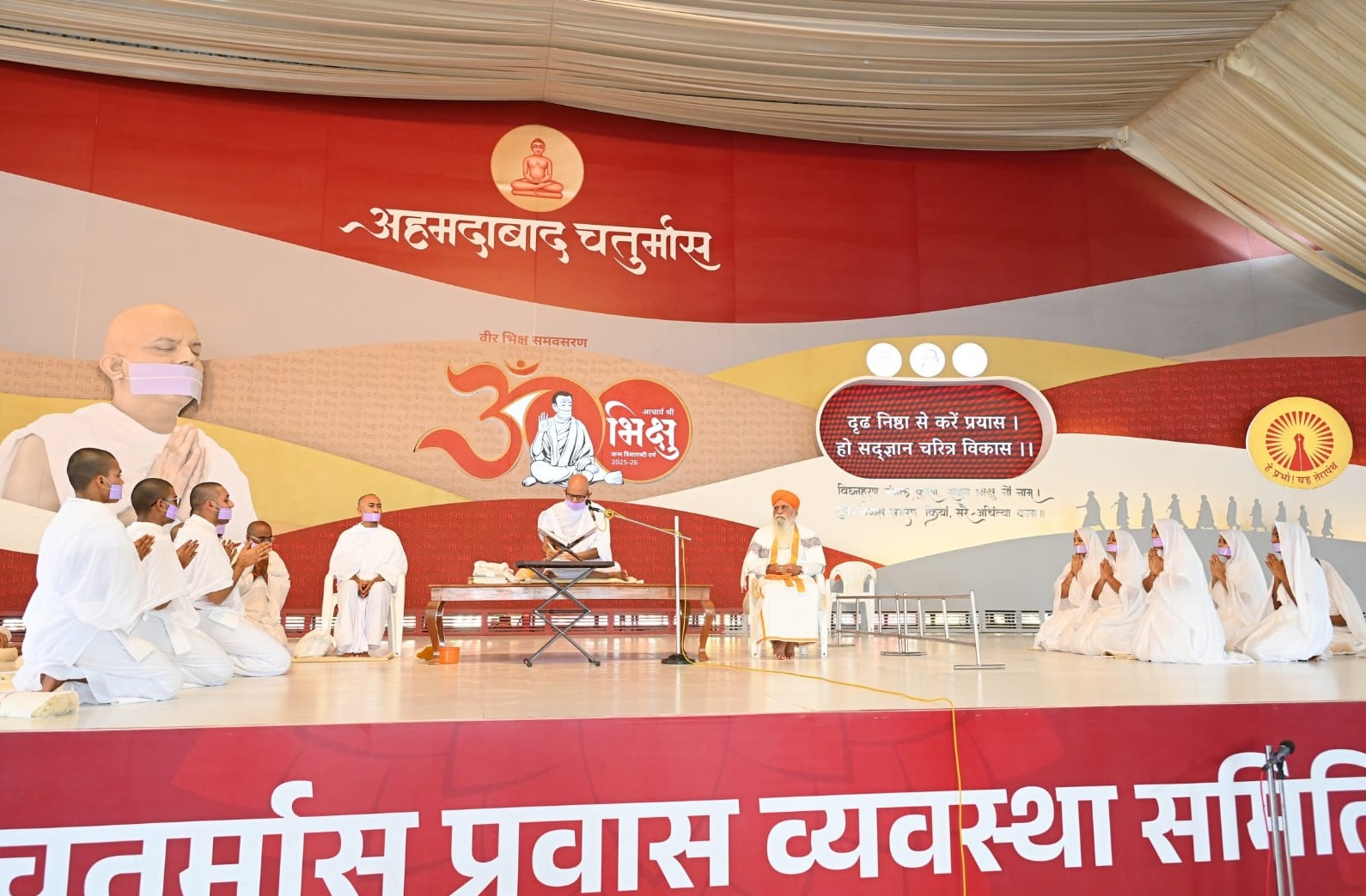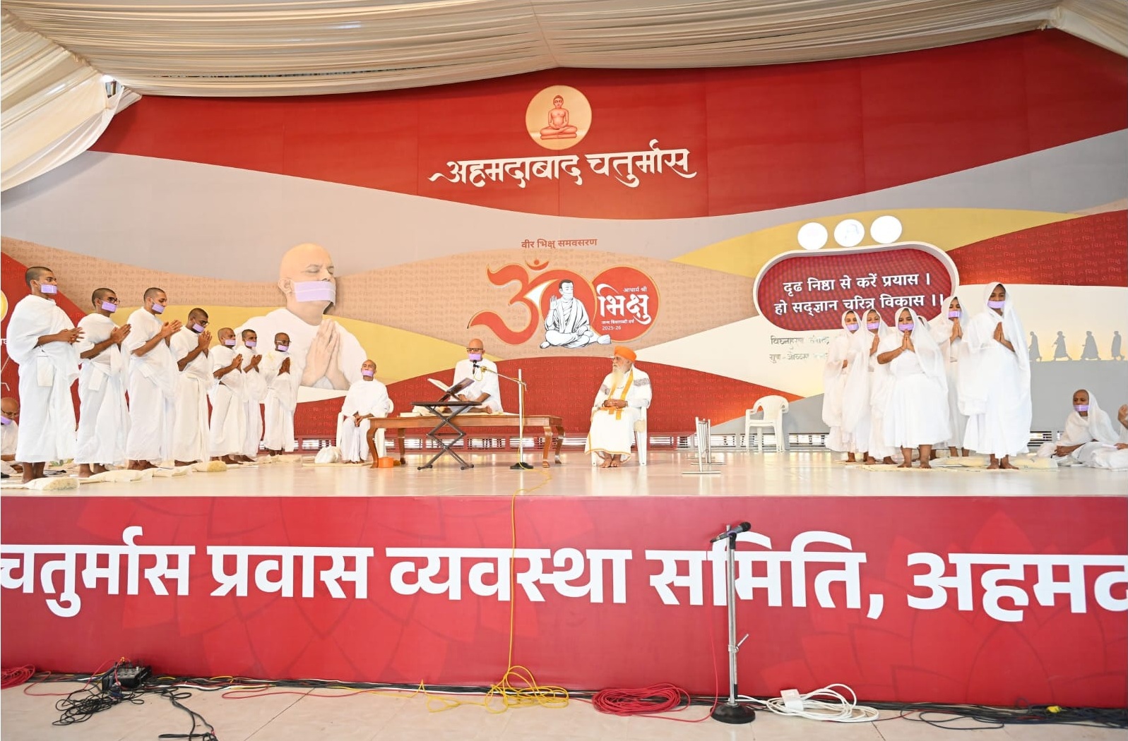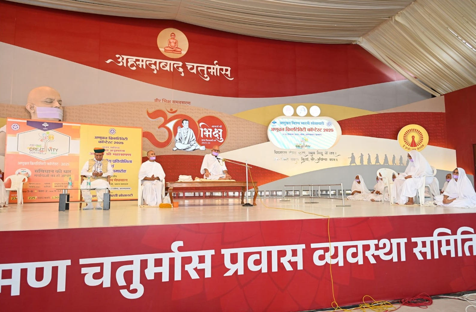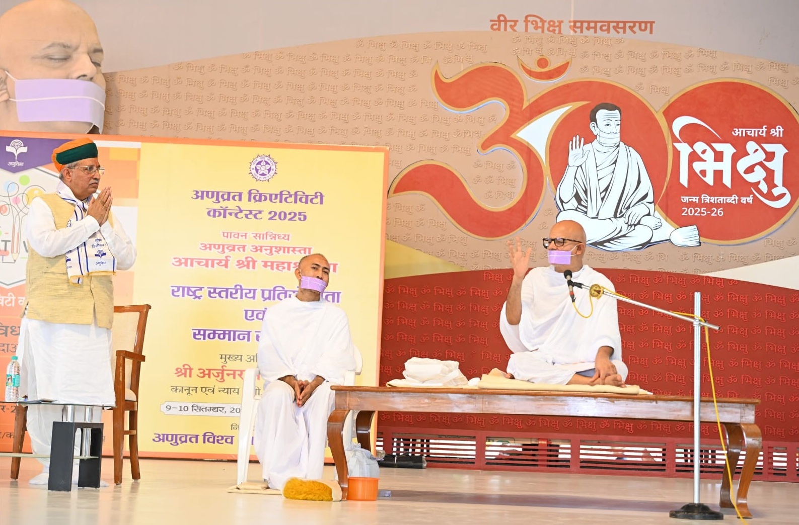 कोबा, गांधीनगर (गुजरात) : सद्भावना, नैतिकता और नशामुक्ति के संदेश देश विदेश में मानवता की अलख जगाने वाले अणुव्रत अनुशास्ता युगप्रधान आचार्य श्री महाश्रमण जी के पावन सान्निध्य में आज भारत सरकार के कानून एवं न्याय राज्यमंत्री श्री अर्जुनराम मेघवाल दर्शन करने पहुंचे। आचार्य श्री के सान्निध्य में आज अणुव्रत क्रिएटिव कॉन्टेस्ट की राष्ट्रीय प्रतियोगिता का मंचीय आयोजन हुआ। वहीं दिनांक 3 सितंबर को दीक्षित होने वाले 17 नवदीक्षित साधु साध्वियों की बड़ी दीक्षा का भी कार्यक्रम समायोजित हुआ। जिसमें गुरूदेव ने पांच महाव्रतों का व्याख्यपूर्वक से स्वीकरण कराते हुए नवदीक्षितों को छेदोपस्थानीय चारित्र प्रदान किया। अणुव्रत की राष्ट्रीय प्रतियोगिता के तहत 18 राज्यों से 350 विद्यार्थी प्रस्तुति देने पहुंचे। अखिल भारतीय संत समिति, निष्कलंकी नारायण तीर्थ धाम प्रेरणा तीर्थ के जगद्गुरु सत्पंथाचार्य ज्ञानेश्वर देवाचार्य महाराज भी आज के समारोह में सहभागी बने।