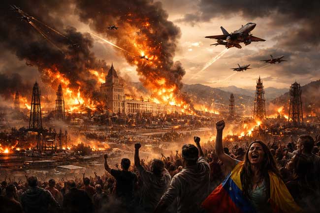 वेनेजुएला की राजधानी काराकस पर हुए भीषण अमेरिकी हवाई हमले केवल सैन्य कार्रवाई नहीं हैं—वे उस सोच का उद्घोष हैं, जिसमें किसी देश की जनता, उसकी लोकतांत्रिक इच्छा और उसका भविष्य, सब कुछ ‘रणनीतिक हितों’ की वेदी पर बलि चढ़ाने योग्य माना जाता है। कम ऊँचाई पर उड़ते लड़ाकू विमान, आधी रात को गूंजते विस्फोट और समुद्र में बढ़ती नौसैनिक हलचल—यह सब उस पुराने झूठ को नए आवरण में पेश करने की तैयारी है, जिसे अमेरिका वर्षों से अलग-अलग देशों में परोसता आया है—कभी ‘ड्रग्स के विरुद्ध युद्ध’ के नाम पर, कभी ‘लोकतंत्र की बहाली’ के बहाने।