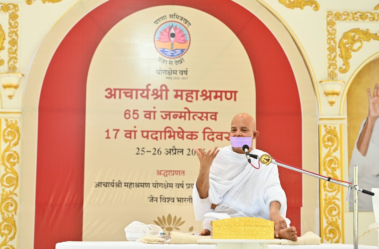 आज का दिन किसी रूप में मुझसे भी जुड़ गया है। किसी रूप में मैं भी भगवान महावीर के इस दिन से जुड़ गया हूं। योग ऐसा बना है कि वैशाख शुक्लपक्ष से मेरे कई प्रसंग जुड़े हुए हैं तो भगवान महावीर का भी यह दिन वैशाख महीने के शुक्लपक्ष से जुड़ा हुआ है। दुनिया में अनेक धर्म हैं। हम सभी जैन धर्म में साधना कर रहे हैं। जैन धर्म में दिगम्बर और श्वेताम्बर रूप की दो धाराएं बह रही हैं। हम लोग श्वेताम्बर धारा के अमूर्तिपूजक धारा के तेरापंथ के पथिक हैं। इस संप्रदाय के प्रथम अनुशास्ता, जनक आचार्यश्री भिक्षु हुए। आज से करीब 266 वर्ष पूर्व इसका प्रारम्भ हुआ। आचार्यश्री भिक्षु स्वामी द्वारा बनाई गई मर्यादाओं व नियमों के आधार पर यह शासन चल रहा है। मुझे दीक्षा लेने के बाद आचार्यश्री तुलसी पास बचपन से ही रहने का अवसर मिला। उन्होंने मुझे कितना आगे बढ़ाया। युवाचार्यश्री महाप्रज्ञजी के पास भी रहा। संघीय कार्य से भी जुड़ने का सुअवसर मिला। आचार्यश्री तुलसी के महाप्रयाण के बाद आचार्यश्री महाप्रज्ञजी ने मुझे युवाचार्य घोषित कर दिया और मुझे लगभग तेरह वर्षों तक उनकी साया में रहने का अवसर मिला। कितनी वत्सलता प्राप्त हुई। मुझे वर्षों तक उनके पास बैठकर आहार करने का मौका मिलता। उनके पास विद्यार्थी के रूप में कृपा मिला। इस प्रकार मुझे गुरुदेवश्री तुलसी व आचार्यश्री महाप्रज्ञजी की कृपा प्राप्त हुई।