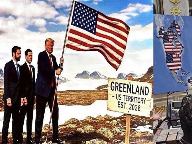 ट्रंप द्वारा साझा किए गए नक्शे में अमेरिका का आकार असामान्य रूप से बड़ा दिखाया गया है। इसमें उत्तर में कनाडा, दक्षिण अमेरिका का वेनेजुएला और डेनमार्क के अधीन ग्रीनलैंड को अमेरिकी क्षेत्र के तौर पर पेश किया गया है। इसके साथ ही ट्रंप ने एक और तस्वीर भी पोस्ट की, जिसमें वह उप-राष्ट्रपति जेडी वेंस और विदेश मंत्री मार्को रूबियो के साथ ग्रीनलैंड में अमेरिकी झंडा लगाते नजर आ रहे हैं। तस्वीर पर लिखा है—